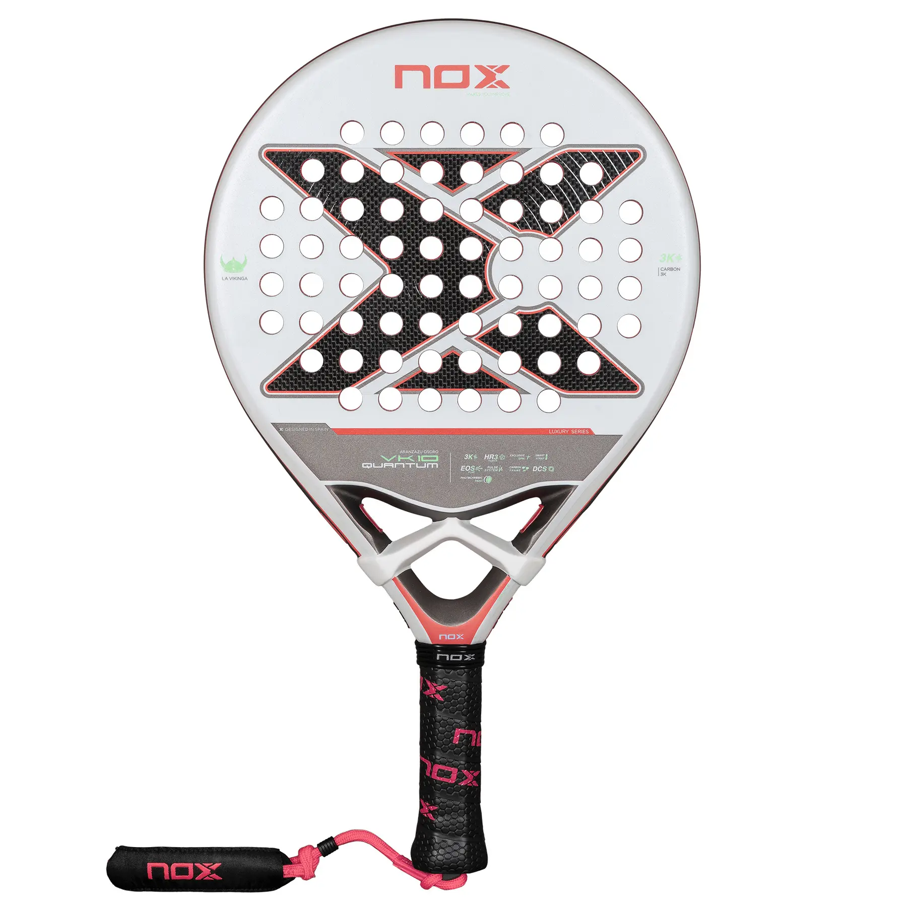 The Nox VK10 Quantum 3K weighs 350-365 g and combines 3K carbon fiber with Nox's legendary HR3 core. EOS Flap technology optimizes handling and effectively redistributes weight. With Photochromic Paint and a special eight-sided grip cap, it offers quick response and excellent grip handling with reduced vibrations.